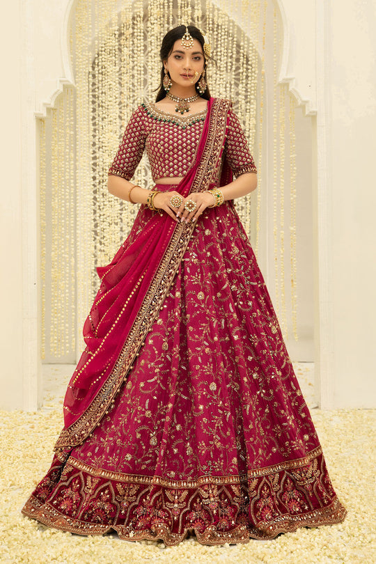 A breathtaking ensemble featuring a net bodice adorned with meticulously hand-embroidered detailing, radiating timeless elegance.